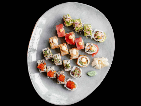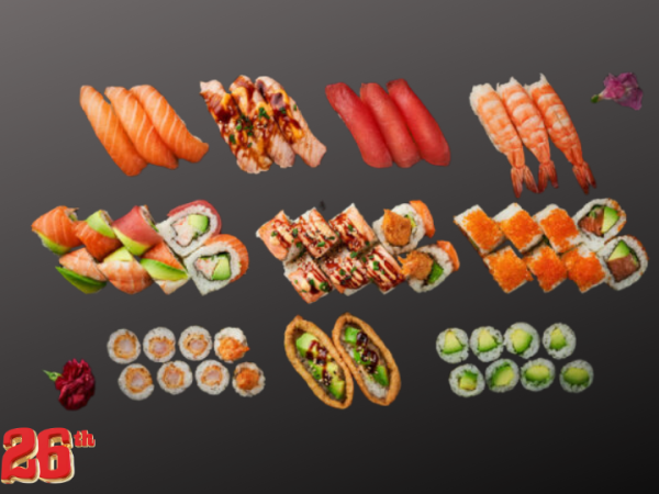 En stor og varieret sushi-menu med et bredt udvalg af nigiri, uramaki og hosomaki.