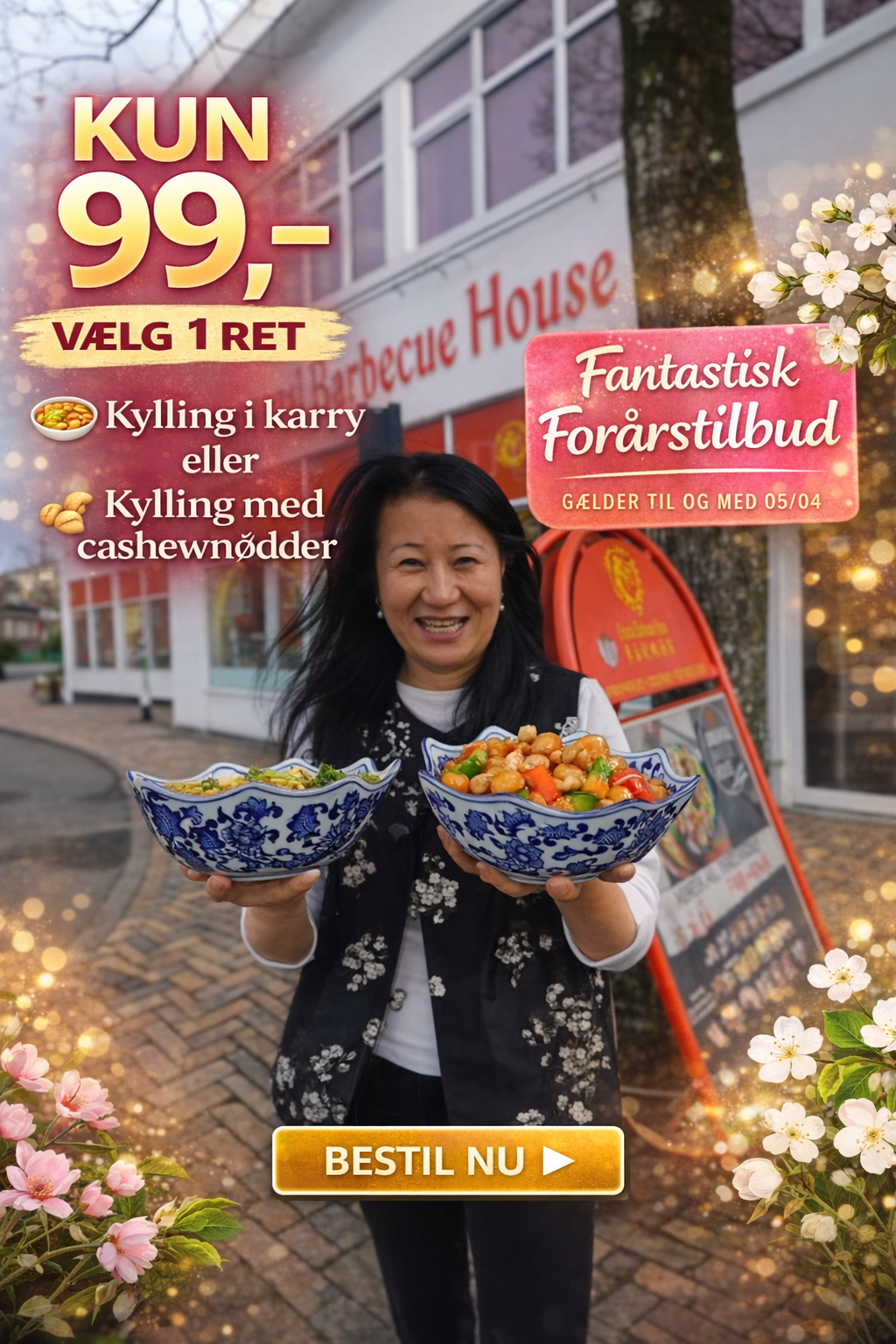 Takeaway i Odense – vælg mellem kylling i karry eller kylling med cashewnødder. Lækkert og nemt måltid til kun 99,-.