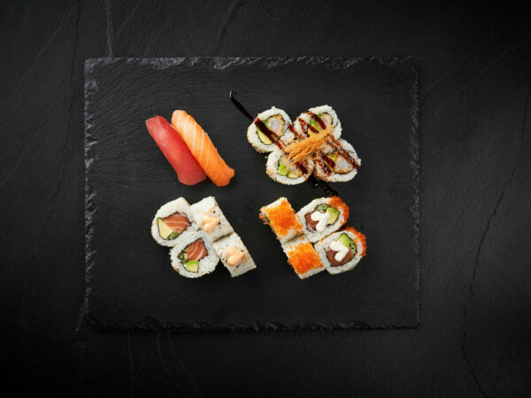 En klassisk sushi-menu med lidt af det hele – perfekt til dig, der vil smage de mest populære varianter. Menuen består af: