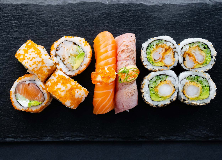 En klassisk sushi-menu med lidt af det hele – perfekt til dig, der vil smage de mest populære varianter. Menuen består af:
